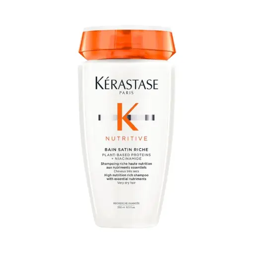 شامبو كيراستاس نيوتريتيف بان ساتان ريتش يغذي الشعر شديد الجفاف بعمق وينظفه بلطف. يمنح الشعر نعومة ولمعانًا ويحسن سهولة التصفيف مع الحفاظ على ترطيبه الطبيعي.