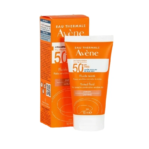 Avène Fluide Teinté SPF 50+ is a high-protection sunscreen specifically designed for sensitive, normal to combination skin. It provides broad-spectrum protection against UVB, UVA, and blue light (up to 450nm) to help prevent premature skin aging.