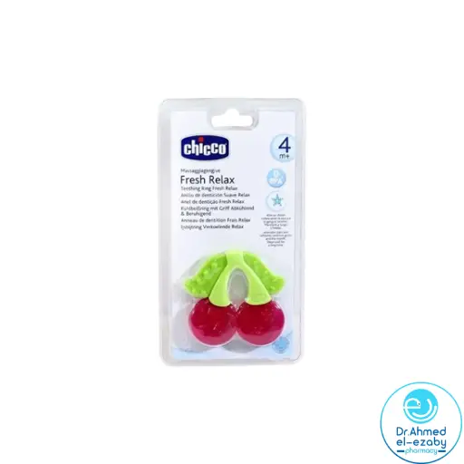 حلقة التسنين فريش ريلاكس بمقابض مريحة، مصممة لإنعاش وتهدئة اللثة، يمكن تخزينها في الثلاجة لتبريد الماء الموجود في المحمل وتخفيف آلام اللثة بسبب التسنين