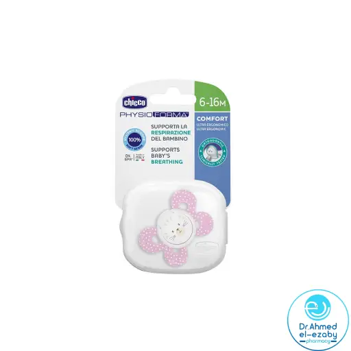 PhysioForma Comfort 6-16m is a very comfortable Chicco pacifier that with only 4 contact points on the baby’s face ensures maximum sensitivity, facilitating natural movement of the mouth.