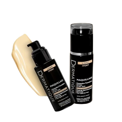 Thank you for reading this post, don't forget to subscribe!The Dermatique Maquillage Corrective Foundation in Light Ivory (30ml) is a high-coverage, long-lasting foundation that offers a flawless, natural finish. It includes SPF 30 to protect your skin from harmful UVA/UVB rays and is enriched with Vitamin E, Hyaluronic Acid, and Niacinamide to rejuvenate and hydrate the skin. The formula is anti-shine, non-greasy, lightweight with a matte finish, suitable for all skin types, and paraben-free.