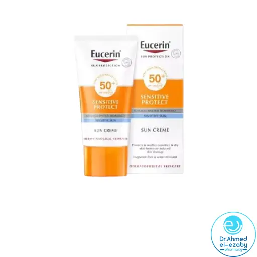 Eucerin Sun Creme Sensitive Protect SPF 50+ is a daily facial sunscreen designed to provide superior sun protection for sensitive and dry skin. Its Advanced Spectral Technology combines broad-spectrum UVA and UVB filters with Licochalcone A, a powerful antioxidant that neutralizes free radicals caused by UV rays and HEVIS (High-Energy Visible Light) exposure.