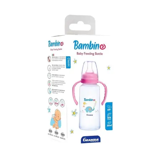 GRANZIA BAMBINO Classic Feeding Bottle – Rose Color with Handle – 300ml