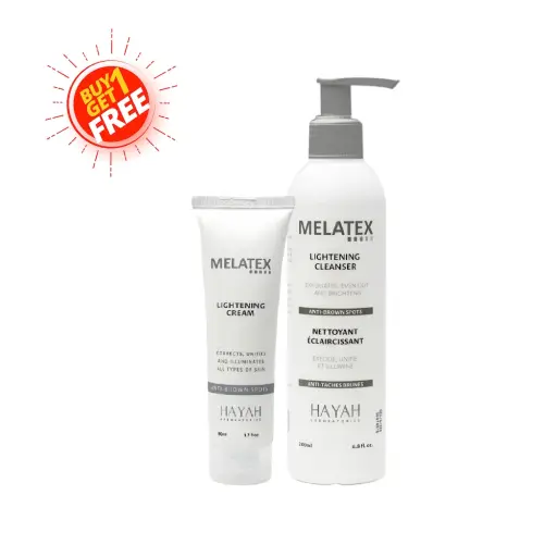 Achieve brighter, more even skin with the HAYAH Melatex Lightening Cleanser 200ml and Cream 50ml. This powerful duo works in harmony to target dark spots, lighten skin, and promote a smoother complexion.