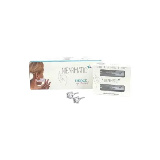 The Nina Niearmatic Piercing 61824 is a safe and effective device for ear or nose piercing at home. Its medical-grade design ensures sterility until the package is opened, minimizing infection risk and providing a nearly painless piercing experience.