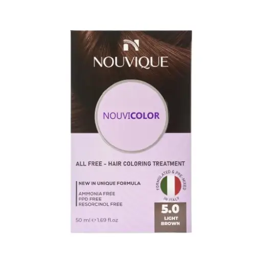 NOUVIQUE Nouvicolor 5 Light Brown is a professional permanent hair dye that delivers a rich, natural light brown shade. Its gentle, nourishing formula ensures long-lasting, vibrant color while keeping hair soft, smooth, and shiny. Perfect for covering gray hair or enhancing your natural tone with salon-quality results at home.