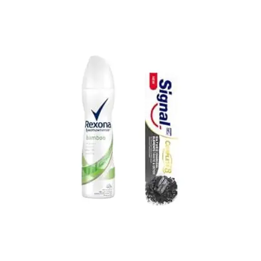 This appears to be a promotional add-on included with the Rexona spray, likely a mini tube of Signal Complete toothpaste, potentially in a charcoal variant (as hinted in some regional listings)