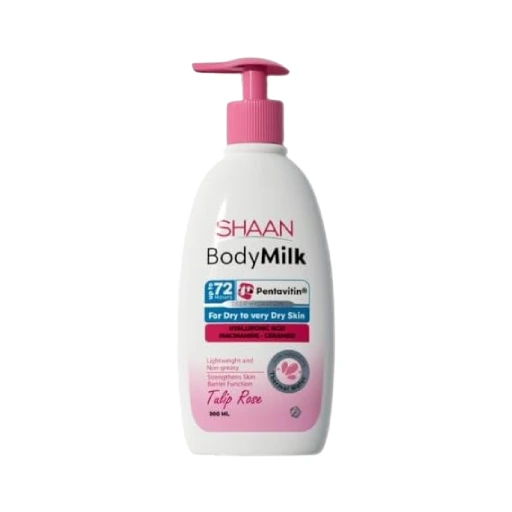 Thank you for reading this post, don't forget to subscribe!Shaan Body Milk Tulip Rose (300ml) is a moisturizing lotion designed to provide deep hydration and nourishment to the skin. Enriched with ceramides, hyaluronic acid, shea butter, and niacinamide, it aims to maintain the skin’s natural barrier, retain moisture, and offer soothing properties. The lotion is free from fragrances and parabens, making it suitable for all skin types, including those with eczema.