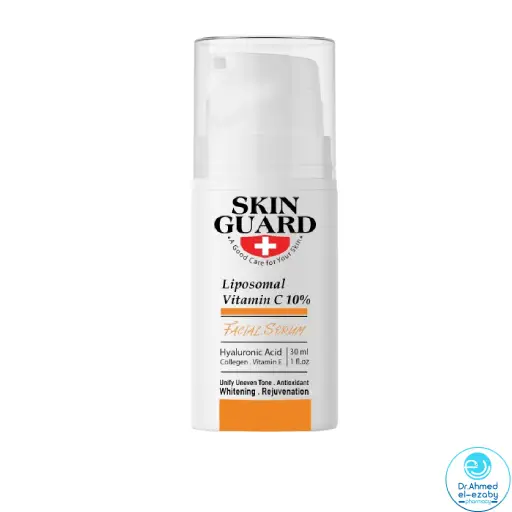 Skin Guard Vitamin C Serum 30ML is a high-performance, antioxidant-rich serum designed to revitalize and protect your skin. Infused with stabilized Vitamin C and hyaluronic acid, this serum works to visibly reduce fine lines and wrinkles, while promoting a more even skin tone and a luminous, healthy glow.