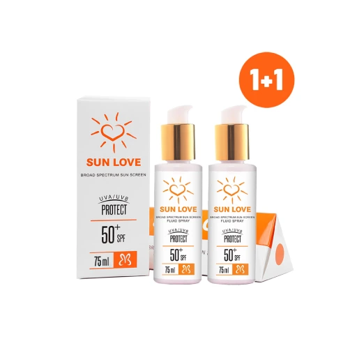 The Sun Love Fluid Spray SPF 50+ (75 ml) is a lightweight, oil-free sunscreen designed for high sun protection. It offers broad-spectrum defense against UVA and UVB rays, making it suitable for intense sun .exposure. The formula is quick-absorbing, leaves no white residue, and provides a matte finish, ideal for sensitive, oily, or acne-prone skin. Additionally, it’s water and sweat-resistant, non-comedogenic