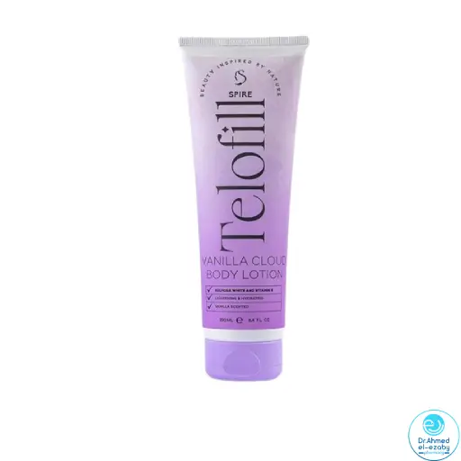 انغمس بعمق في جوهر الترطيب من لوشن الجسم Telofill Vanilla Cloud. محمل بالسولفورا الأبيض لتفتيح البشرة وفيتامين E لترطيبها. استمتعي برائحة الفانيليا الحلوة والمهدئة التي تبدو وكأنها عناق دافئ لبشرتك. مناسب لأصحاب البشرة الحساسة لأنه لا يحتوي على أي عطور صناعية. استمتعي ببشرة أفتح وأكثر نعومة وخالية من البقع الداكنة مع لوشن الجسم