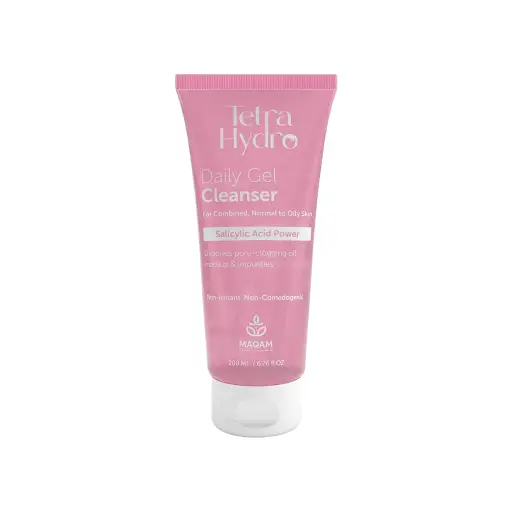 Discover the power of Tetra Glow TETRA HYDRO DAILY GEL CLEANSER 200 ML, a specially formulated gel cleanser that cleanses deeply while caring for your skin. This salicylic acid-powered cleanser dissolves pore-clogging oils, makeup, and impurities, making it an ideal choice for combination, normal, and oily skin types.