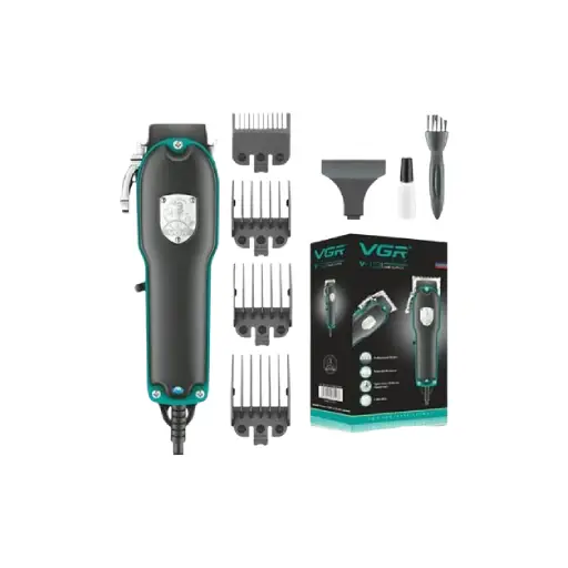 The VGR V‑123 is a durable, corded hair clipper engineered for both home and professional use. Equipped with a powerful motor, stainless-steel blades, and 4 guide combs, it delivers consistent, smooth trimming for a range of hair lengths.